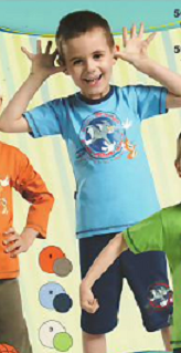 Dětské pyžamo s krátkým rukávem je ozdobené tiskem na tričku a na kraťasech. Tričko má lem u krku a štepování v barvě kalhot. Souprava je vhodná na spaní i na procházku.