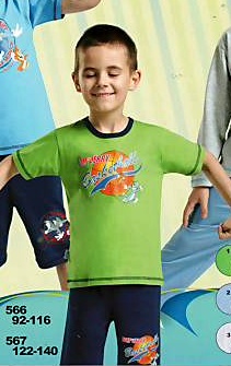 Dětské pyžamo s krátkým rukávem je ozdobené tiskem na tričku a na kraťasech. Tričko má lem u krku a štepování v barvě kalhot. Souprava je vhodná na spaní i na procházku.