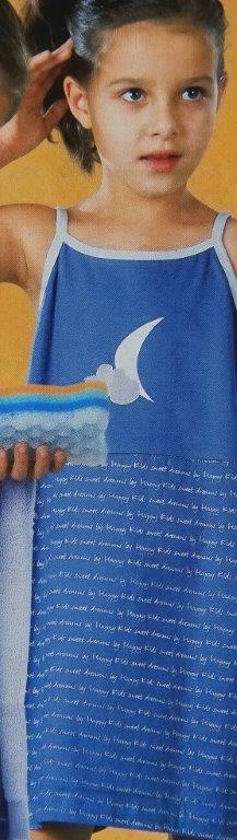 Dívčí noční košilka na ramínka je vyrobená z jemného materiálu, ramínka jsou lemovaná ozdobnou paspulí. Přední díl kombinovaný, zadní díl celý potištěný.