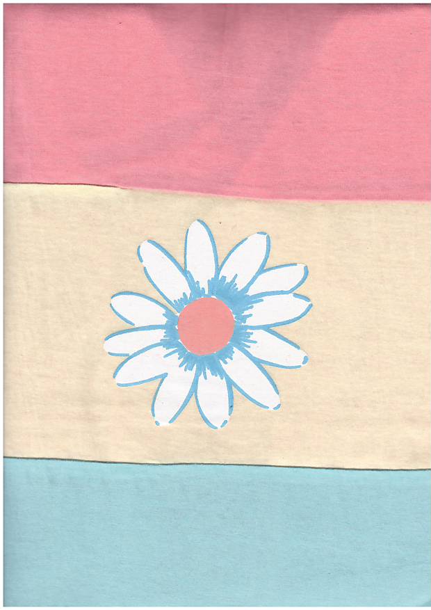 Přední díl ozdobený tiskem, zadní díl v barvě rukávů. Délka cca 85 cm.