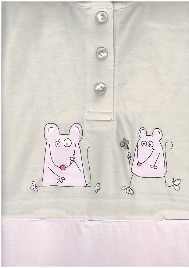 Kombinovaná dívčí noční košile s krátkým rukávem má zapínání na 3 knoflíčky a je zdobená tiskem.