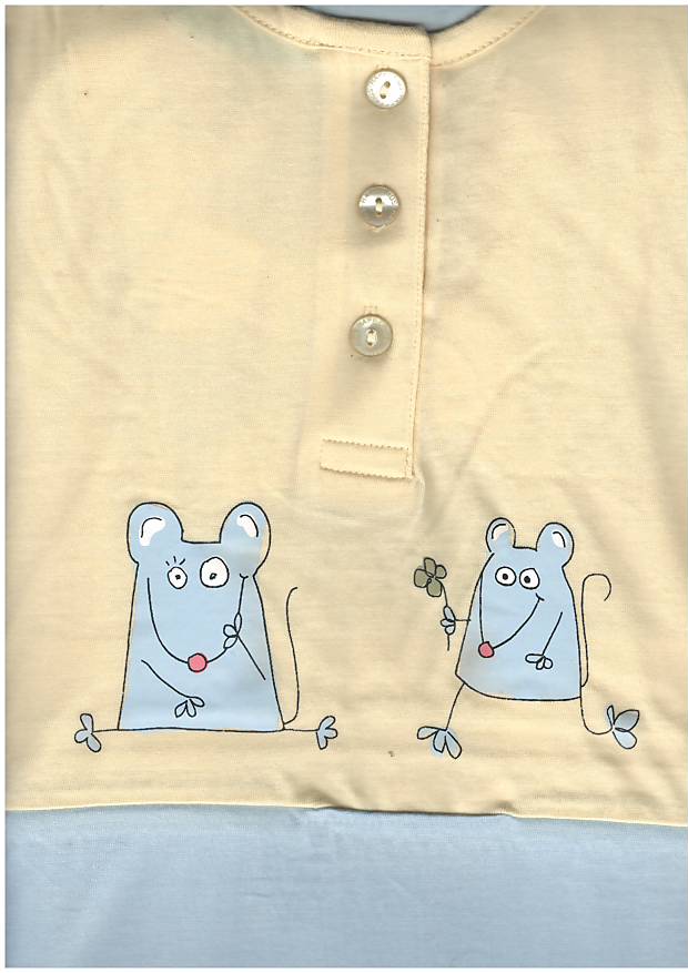 Kombinovaná dívčí noční košile s krátkým rukávem má zapínání na 3 knoflíčky a je zdobená tiskem.
