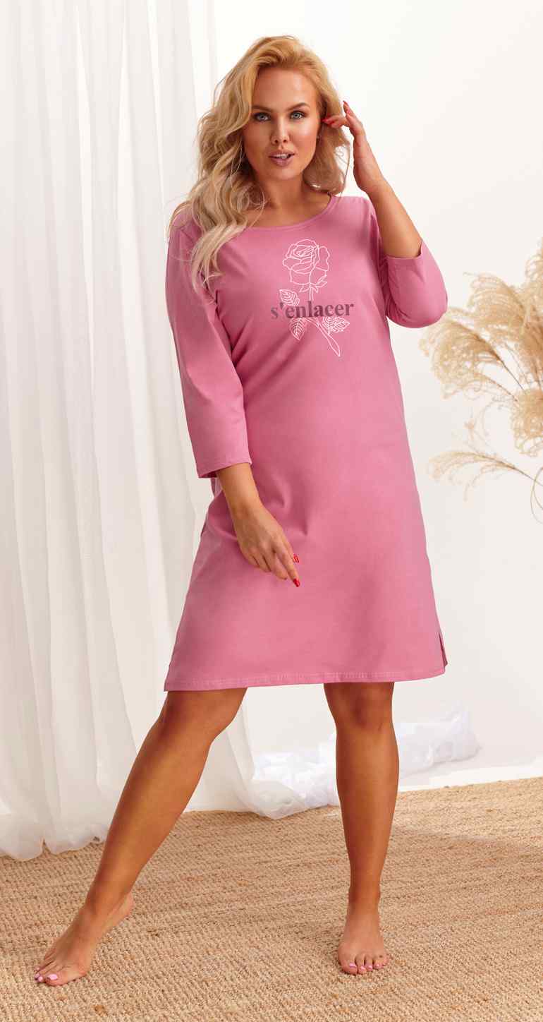 - Taro, dámská noční košile 2461-Jula, dlouhý rukáv, růžová, vel. 4XL