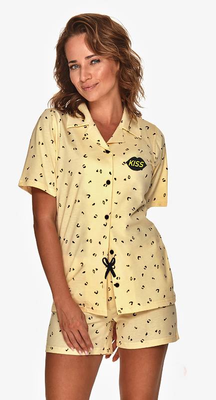 Dámské bavlněné propínací pyžamo s krátkými rukávy, v pase široká guma s mašličkou. Vhodné i pro kojící maminky.