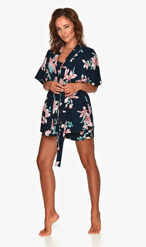 Dámský župánek s krátkým rukávem vhodně doplňuje pyžama a noční košile. V pase vázačka.