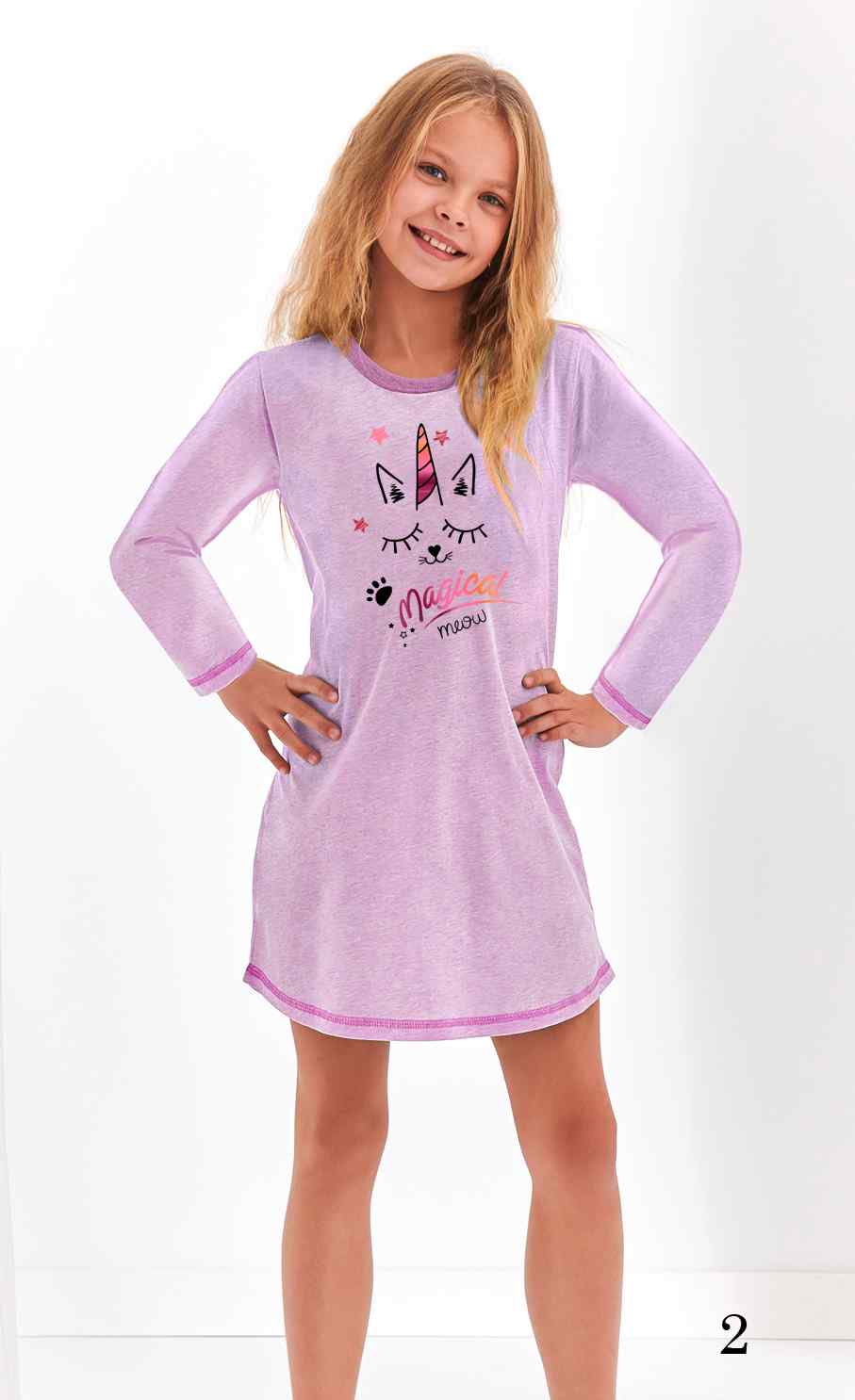 Taro, dětská noční košile 2475/1- Matylda, dlouhý rukáv, fialová, vel. 110