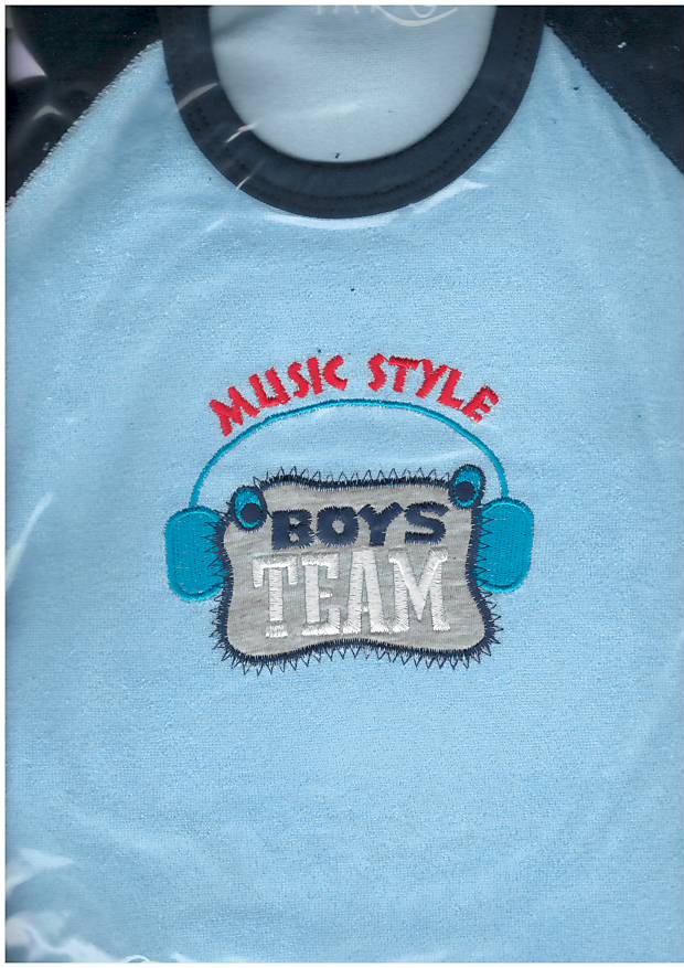 Dětské teplé froté pyžámko má přední díl zdobený výšivkou, rukávy i kalhoty jsou zakončeny nápletem.
