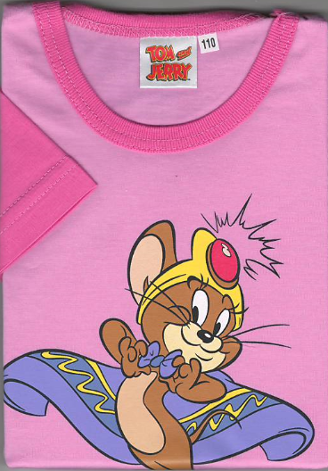 Dětská souprava s krátkým rukávem má tisk na předním dílu, rovné kalhoty jsou v barvě lemu u krku. Vhodná do postýlky i na procházku.