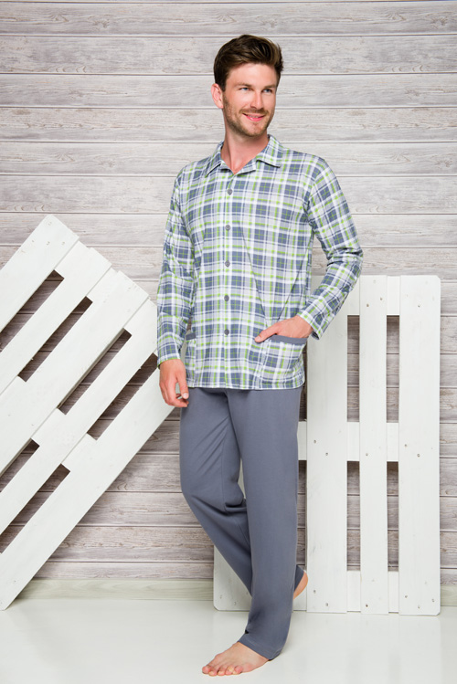 - Taro, pánské propínací pyžamo 1008-GRACJAN, dlouhý rukáv, šedá, vel. M