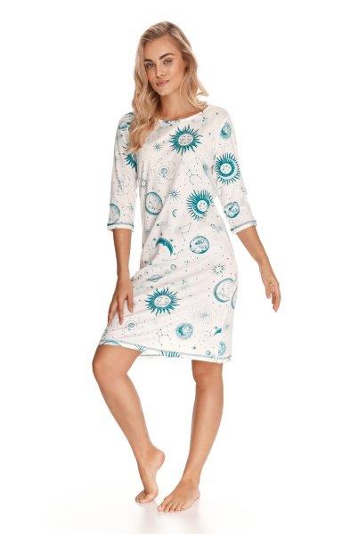 Dámská noční košile s 3/4 rukávem z potištěného materiálu zdobená tiskem.