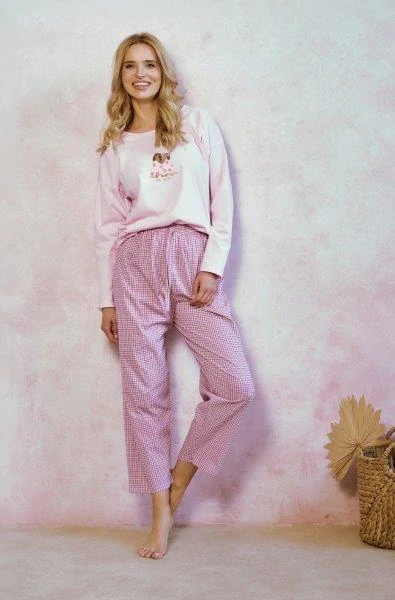 Dámské pyžamo 3434-Elisa, dlouhý rukáv, růžová, vel. M