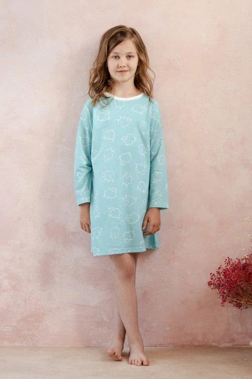 - Dětská noční košile 3278-Tabbie, dlouhý rukáv, tyrkysová, vel. 122, 128, 134, 140