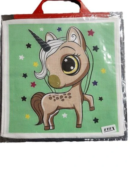 Bavlněné kapesníky s dětským motivem jsou balené v taštičce po 6 kusech. Různé barvy, rozměr 27x27 cm. Materiál:100% bavlna celý popis