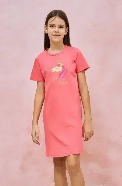 Dívčí bavlněná noční košile s krátkým rukávem ozdobená obrázkem jednorožce.