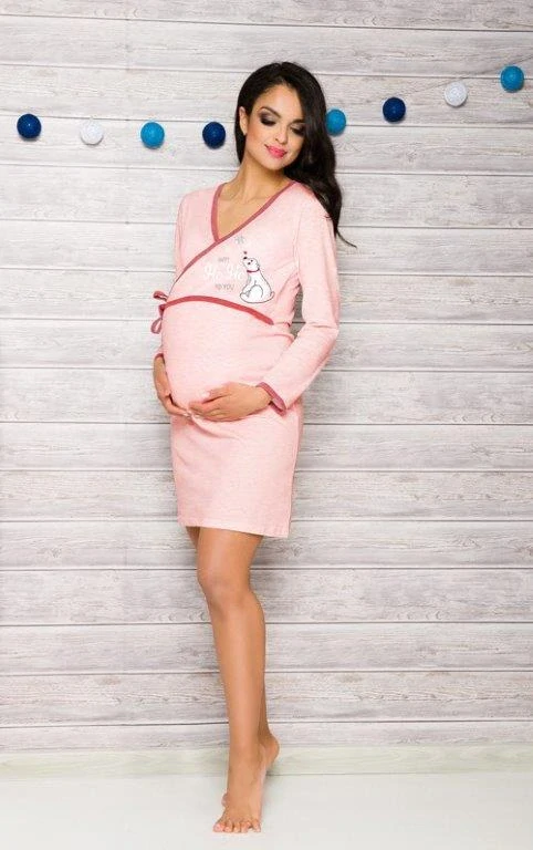 Taro, mateřská noční košile 113-Asia, dlouhý rukáv, světle růžová s obtiskem, vel. SSkladem368 Kč/ ks304 Kč bez DPH
