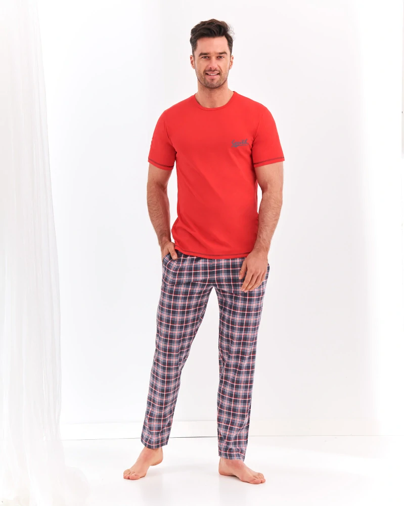 - Taro, pánské pyžamo 2199-Jeremi, krátký rukáv, dlouhé kalhoty, červená, vel. XL