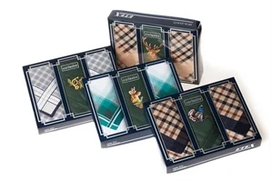Dárková sada pánských kapesníků - kombinace kapesníku vyšívaného a dvou pestře tkaných - s loveckými motivy.