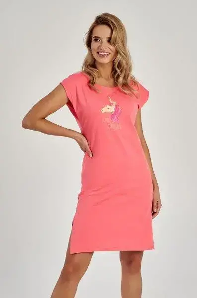 Dámská bavlněná noční košile s krátkým rukávem ozdobená obrázkem jednorožce, na bocích rozparky.