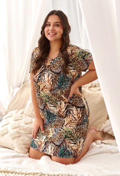 Dámská noční košile s krátkým rukávem je vyrobena z kvalitní potištěné bavlny.